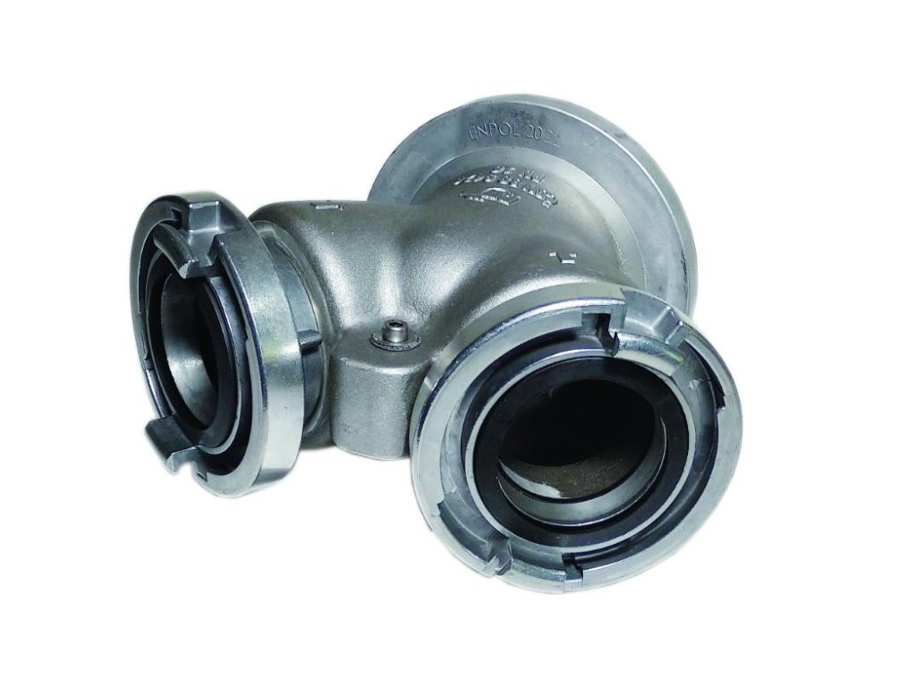 Požární sběrač je určený ke spojování proudů hasiva ze dvou hadicových vedení do jednoho společného toku.