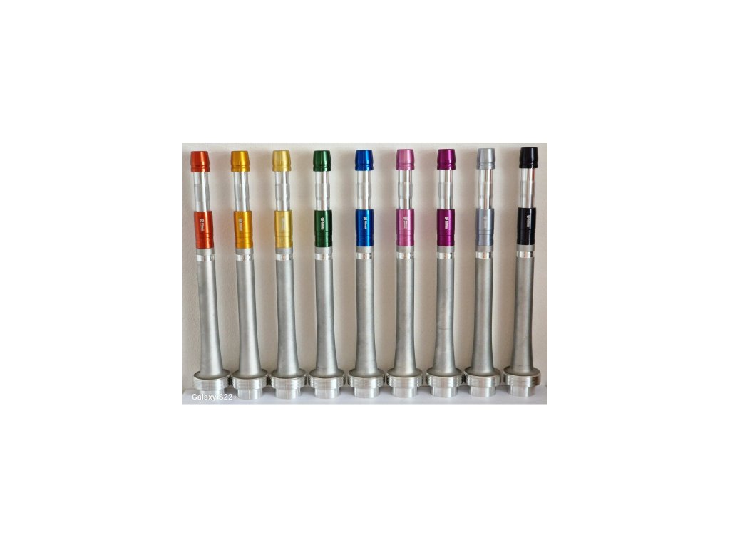 Zcela nový typ proudnic. Proudnice s vnitřními podélnými žebry pro usměrnění proudu vody, odlité z elektronu nebo Al slitin. Dekorativním eloxem je ošetřena koncová část a krytka trysky. Proudnice jsou lehké. Hmotnost proudnice bez spojky je v provedení: