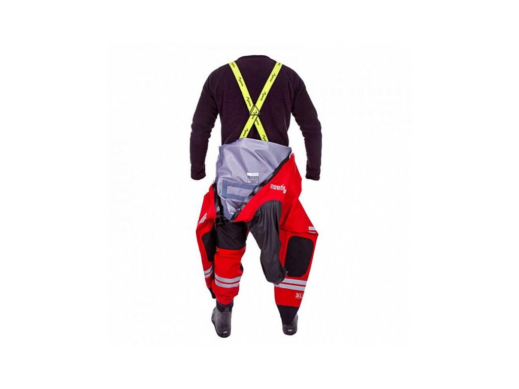 - Vodotěsný plastový zip YKK je umístěn na přední straně obleku, není krytý légou.
