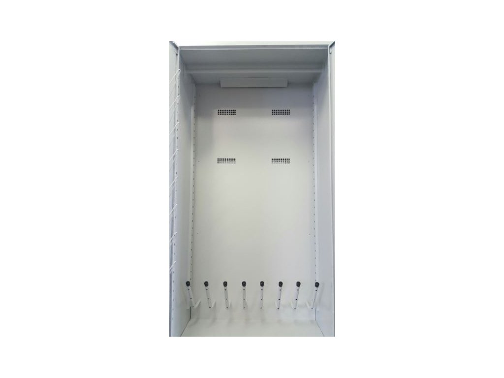 - dveře jsou dvoukřídlé s výztuhami a v jednom ze dvou křídel je držák určený pro vysoušení rukavic