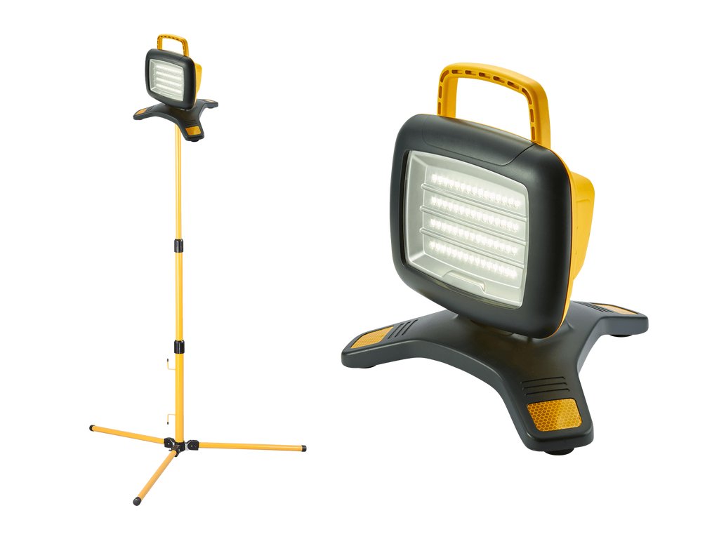 GALAXY PRO je lehký nabíjecí přenosný LED reflektor s maximálním světelným výkonem 3500 lumenů a dobou svícení až 8 hodin, který je ideální pro nasvícení prostor bez přístupu k elektrickému proudu. Reflektor nabízí dva světelné výkony 1750/3500 lumenů. Napájení zajišťuje Li-Ion akumulátor 7.4V 13.2 Ah. V těle reflektoru je úložný prostor na nabíjecí kabel. Díky polohovací hlavě si můžete nastavit směr svícení vždy podle vaší potřeby. Jako volitelné příslušenství lze dokoupit magnety pro nohy základny reflektoru nebo 1,7 m vysoký stativ pro širší varianty použití. GALAXY PRO je vodě odolný podle stupně krytí IP54. Přenosný reflektor GALAXY PRO je díky svým technickým vlastnostem vhodný pro vykonávání prací jako je například noční údržba strojů, objektů, opravy elektrického vedení nebo opravy porouchaných vozidel, ale taky při prozkoumávání jeskyní a šachet nebo jej lze využít jako pohotovostní osvětlení při výpadku elektrického proudu.